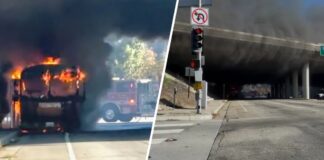 A dramatic scene unfolded Wednesday morning in Los Angeles when an electric school bus suddenly caught fire beneath the 210 Freeway overpass in the...